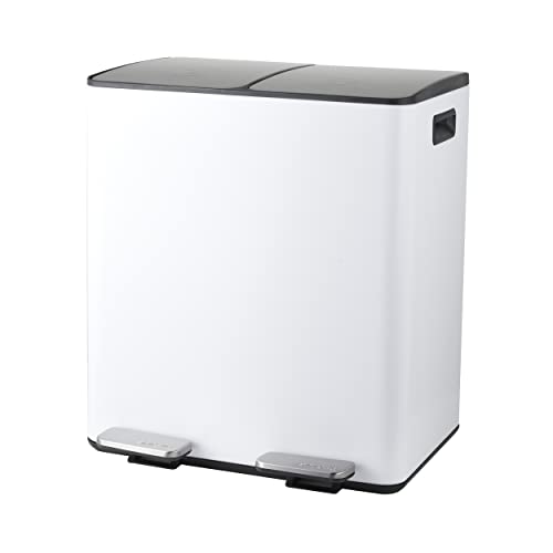 Spirella Avfallssepareringssystem 40 l (2 x 20 liter) med inre hink stor avfallsbehållare Pedalhink rostfritt stål automatisk sänkning – vit