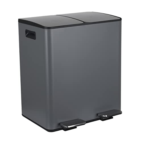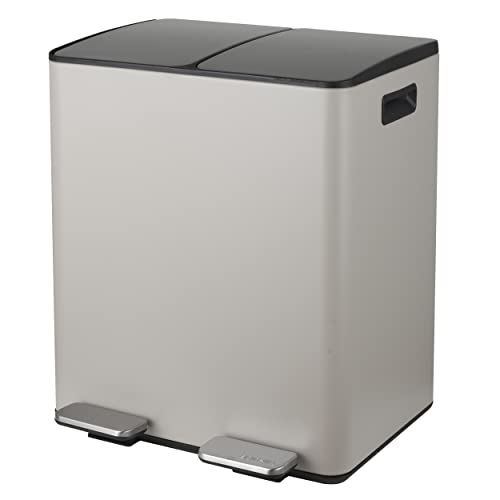 Spirella Avfallssepareringssystem 40 l (2 x 20 liter) med inre hink stor avfallsbehållare Pedalhink rostfritt stål automatisk sänkning – grå