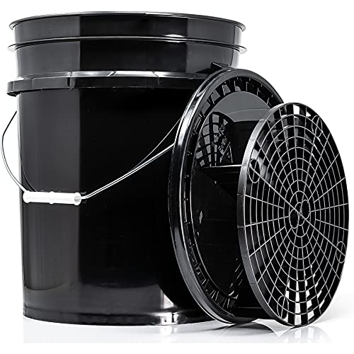 detailmate Black&White Set | Magic Bucket Wash Hink 20 liter/5GAL smutssil + lock svart | Tillbehör för professionell bilhandtvätt | Perfekt för biltvätt, bilvård