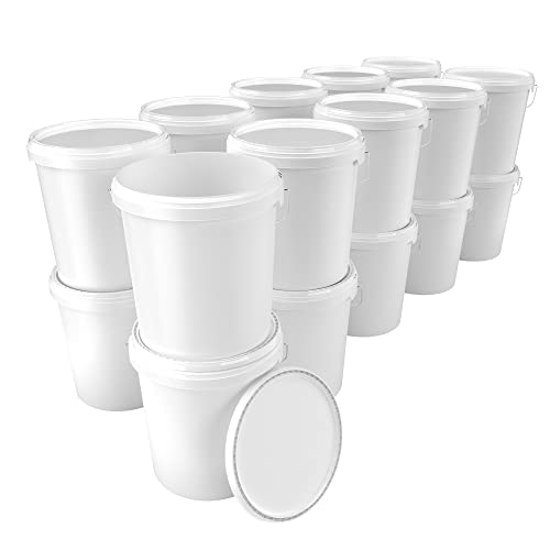 20 x hinkar med lock 16 liter vit – livsmedelssäker lufttät och stabil, tom hink med handtag och stängning lock av PP-material för livsmedelskemi färg tvättpulver lim lämplig
