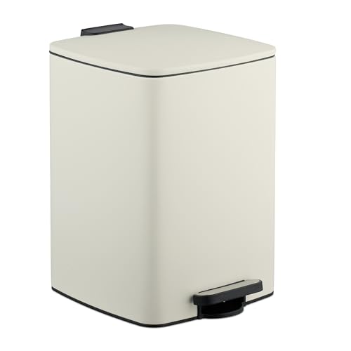 Relaxdays kökspedalfack, 20 liter, avtagbar inre hink, med soppåsfoder, avfallshantering, järn, beige, plast