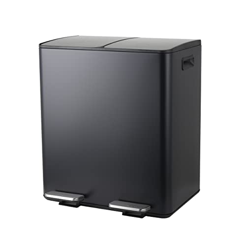Spirella Avfallssepareringssystem 40 l (2 x 20 liter) med inre hink stor avfallsbehållare Pedalhink rostfritt stål automatisk sänkning – svart