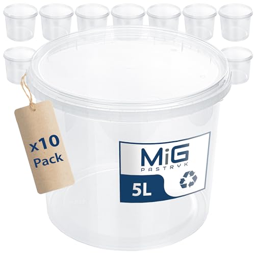 MIG transparent hink med lock 5 l – 5 x 5 l lufttät och livsmedelssäker plasthink med lock – stapelbar liten hink för hushåll och industri – perfekt hink med lock för insättning och förvaring