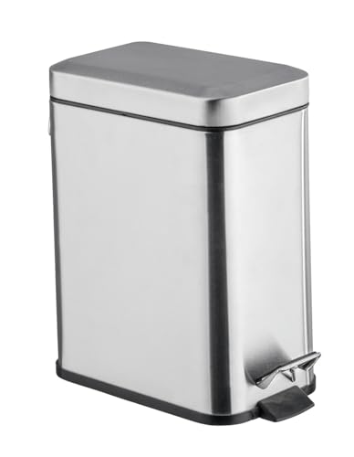 WENKO Sparkhink fyrkantig matt rostfritt stål – kosmetisk hink, papperskorg kapacitet: 5 l, rostfritt stål 14 x 29,5 x 28 cm, satinerad