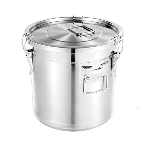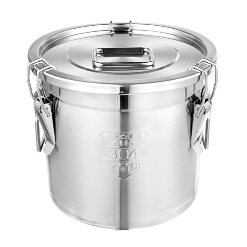 BAOCHADA 20 l rostfritt stål hink, hink rostfritt stål kökskorg med lock, rostfritt stål hink foderhink mjölkhink med handtag, mat robust multifunktionell rostfritt stål stor kapacitet