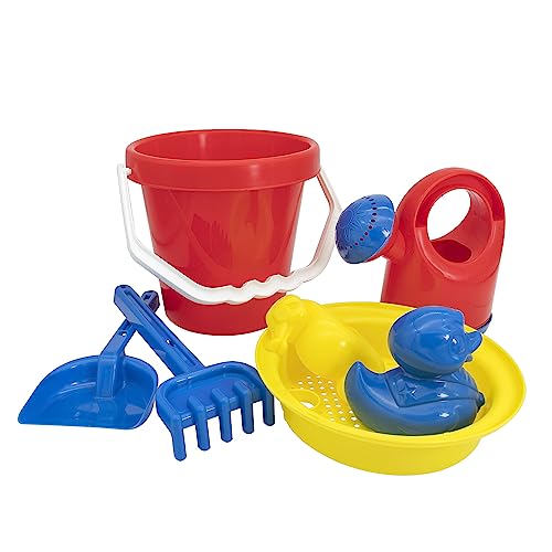 Idena 40239 – Sandleksaksset i 7 delar med hink, vattenkanna, sil, 2 formar, rakare och liten spade, olika färgvarianter