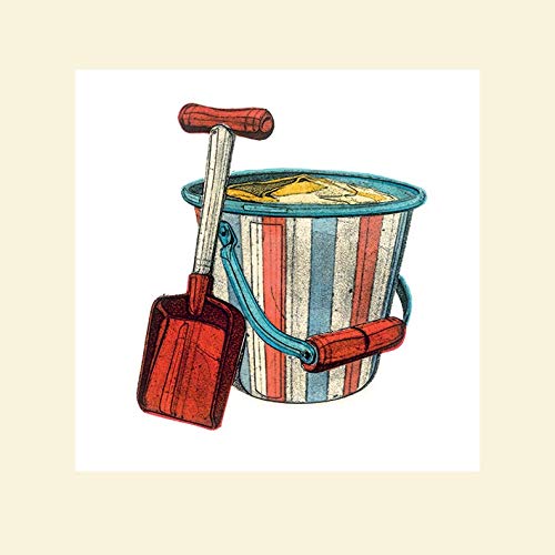 Strandset med hink (Ø18 cm), spade, kratta och en (1) slumpmässigt utvald sandform