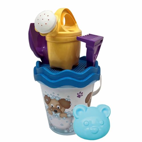 Hund Baby hinkset, 6 delar, hink, sil, sandfrom, spade, kratta, vattendrag, H: 11 cm, D: 14 cm