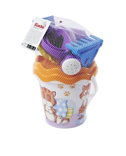 Simba 10711479 – Sandleksset katt, hinkset, 6 delar, hink, sil, sandform, spade, kratta, vattennät, H: 11 cm, D: 14 cm, sandleksak för barn från 3 år