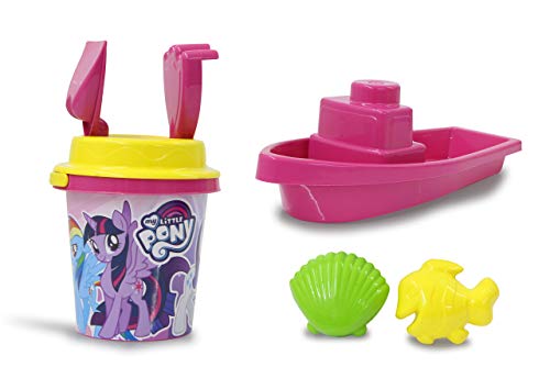 JAMARA 410128 – My Little Pony-sandhink set båt och hink 7 delar – officiellt licensierad – hink, spade, handräke, 2 formar, båt, sandsil