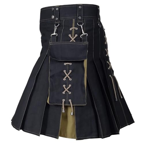 Bröllopsklänning vardaglig fest Kilt Highland kjol vintage cargokjol Skottland gotisk skotsk kläder män bomull verktyg kilt män punk hip hop kjol, Khaki, S