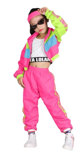AYBUY Barn 80-tal 90-tal träningsoverall, barn ros röd retro sport skal kostym, pojkar flickor snygg street hip hop-kostymer, barn retro mode outfit maskeradkostymer för 1980-talet 1990-tals fest jul