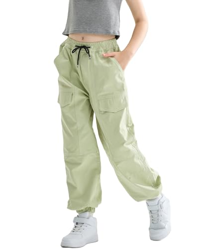 Rolanko Flickor Hip Hop Byxor Barn Cargobyxor Elastisk Jogger för Streetwear Dans, Sagegreen, 11-12 År