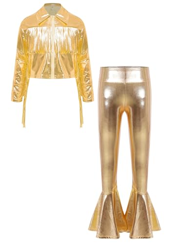 Vxuxlje Hip Hop dansset barn flicka gatudanskläder metalljacka och vasbyxor Hip Hop Jazz Brilliant Streetwear 5–16 år, Guld, 11-12 �r