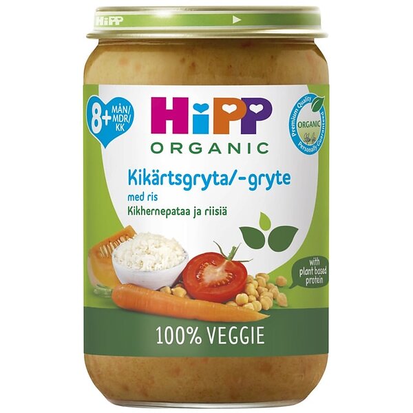 HiPP Gryträtt Kikärtsgryta med Grönsaker & Ris 8m 220g
