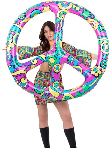 Smiffys gigantisk uppblåsbar CND-symbol rosa 132 cm fredstecken maskeradaccessoar för vuxna 60-talet 70-talet festival fest dekor retro hippie kostym rekvisita för foton teman evenemang och gruppkul