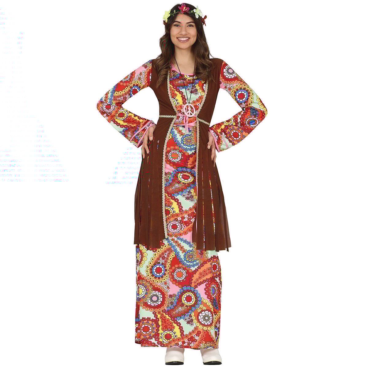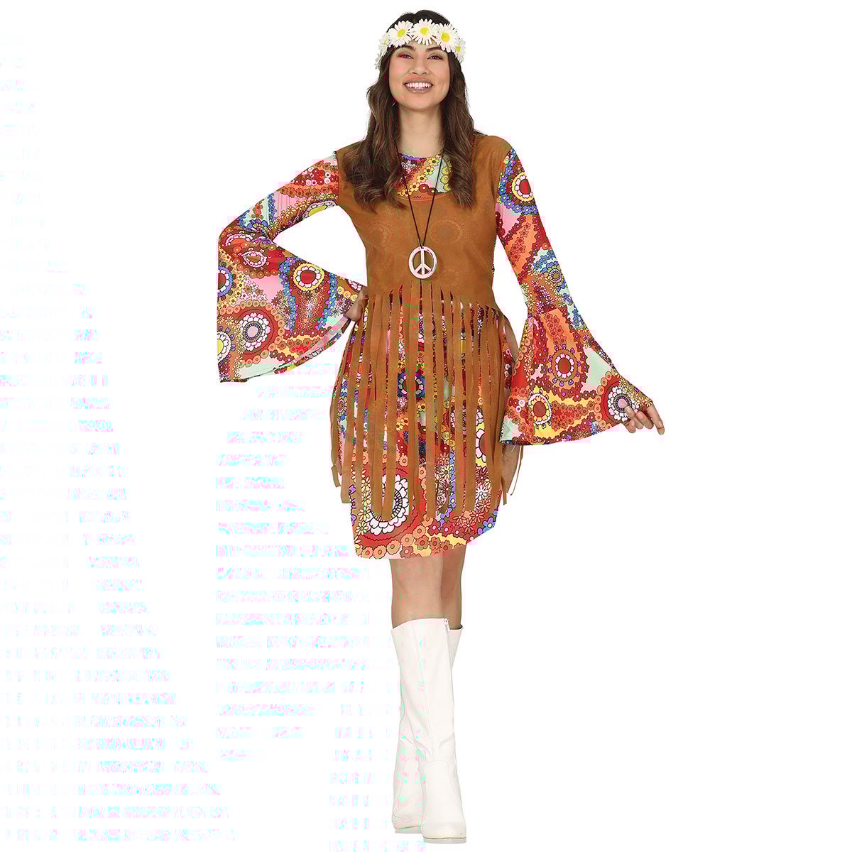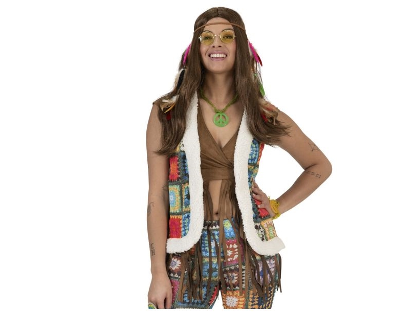 "HIPPIE GIRL" (klänning med väst, pannband, fredstecken halsband) - (M)