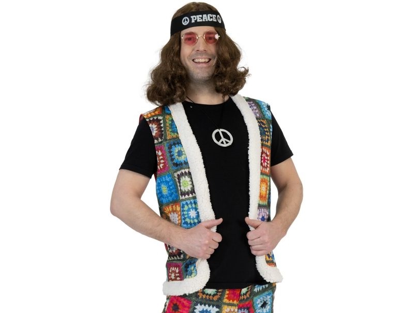 "WOODSTOCK HIPPIE MAN" (tröja utan vest, byxor, headband) – (L)