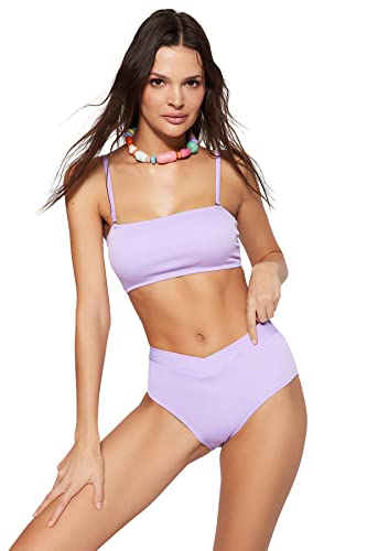 Trendyol Kvinnor hög midja normal travare hipster bikiniunderdel, lila, 38, Lila, 42 SE