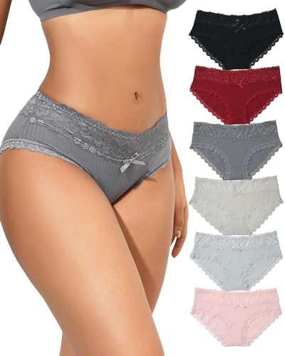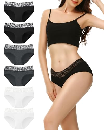 EKSHER Damtrosor spets hipster trosor bomullstrosor mjuka bekväma underkläder kvinnor 6-pack, Svart x 2 + vit x 2 + grå x 2, M