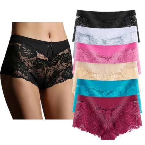 YaoKing Damunderkläder, vanliga och plusstorlek, trosor spets, pojkshorts, hipster, fräcka trosor, 6-pack, 6-pack-a9144, XL