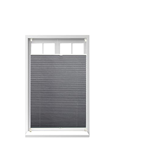 Sekey Plissee-hissgardin utan borrning, mörkläggningsrullgardin, fönster plissé 55 cm bred, spänd ogenomskinlig solskydd fönsterrulle, 55 x 100 cm, mörkgrå