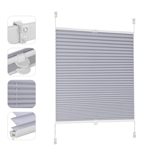 Sekey Plissee-hissgardin utan borrning, mörkläggningsrullgardin, fönster, klämfixering, 80 cm bred, spänd, ogenomskinlig solskydd för fönsterrulle, 80 x 150 cm, mörkgrå