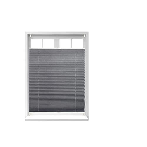 Sekey Plissee-hissgardin utan borrning, mörkläggningsrullgardin, fönster plissé 90 cm bred, spänd ogenomskinlig solskydd fönsterrulle, 90 x 150 cm, mörkgrå