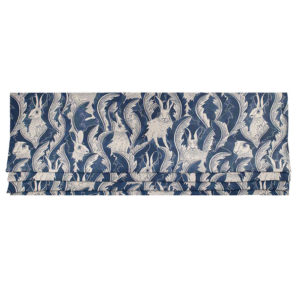 Frösö Handtryck Hares in Hiding Blå Linne Hissgardin