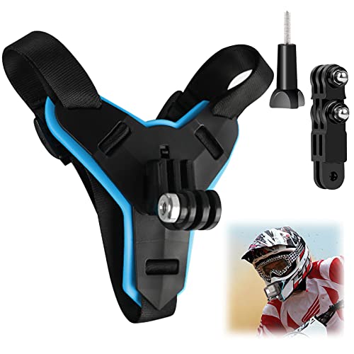 Motorcykelhjälmfäste actionkamera hjälm montering justerbar motorcykelhjälmhållare halkfri hjälm hakstöd böjd hjälmhållare kompatibel med Gopro och andra actionkameror blå