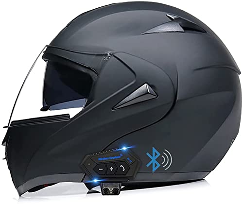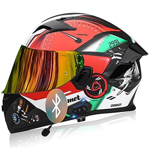 SDFGDFD Motorcykel hjälm för hela ansiktet Bluetooth motorcykelhjälm, dubbel lins flip hela ansiktshjälm med Bluetooth-headset, unisex dubbel visir vuxenhjälmECE/DOTcertifierad motorcykelhjälm
