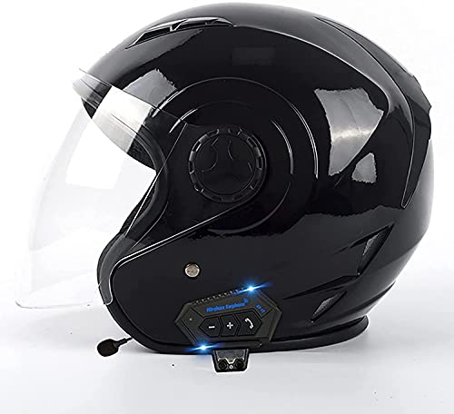 3/4 Öppen ansikts hjälm, Hjälmar med Bluetooth -headset, Snygg halvöppen hjälm för män och kvinnor, Motorcykel Scooter Moped Cruiser Hjälm, DOT/ECE certifierad hjälm B,L