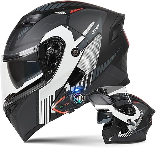 Bluetooth öppningsbar helhjälm - Modulär med dubbel visir, ECE-certifierad, integrerad med mikrofon för automatisk respons, intercom-hjälm, 13-62 cm