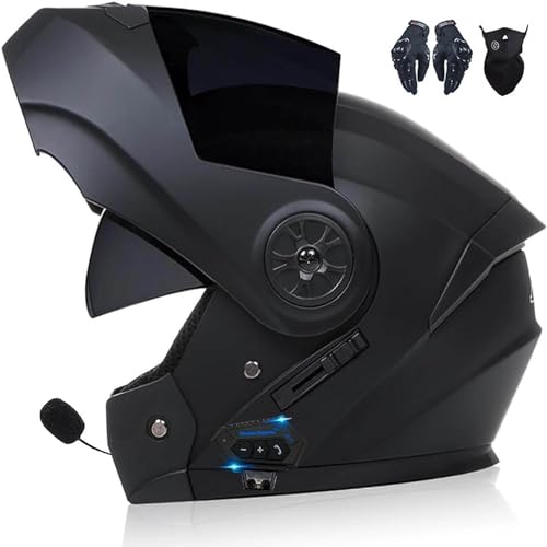EBAYIN Motorcykel Bluetooth-hjälm Full Face Anti-Imma Visir DOT ECE-godkänd Män Kvinnor Face Up-hjälm Bluetooth Modular Helmet XL 61~62CM)