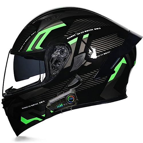 SDFGDFD Motorcykel hjälm för hela ansiktet Bluetooth motorcykelhjälm, dubbel lins flip hela ansiktshjälm med Bluetooth-headset, unisex dubbel visir vuxenhjälmECE/DOTcertifierad motorcykelhjälm