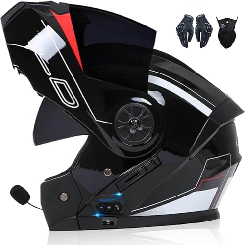 Motorcykel Bluetooth-hjälm Full Face Anti-Imma Visir DOT ECE-godkänd Män Kvinnor Face Up-hjälm Bluetooth Modular Helmet,B-L=(59~60CM)