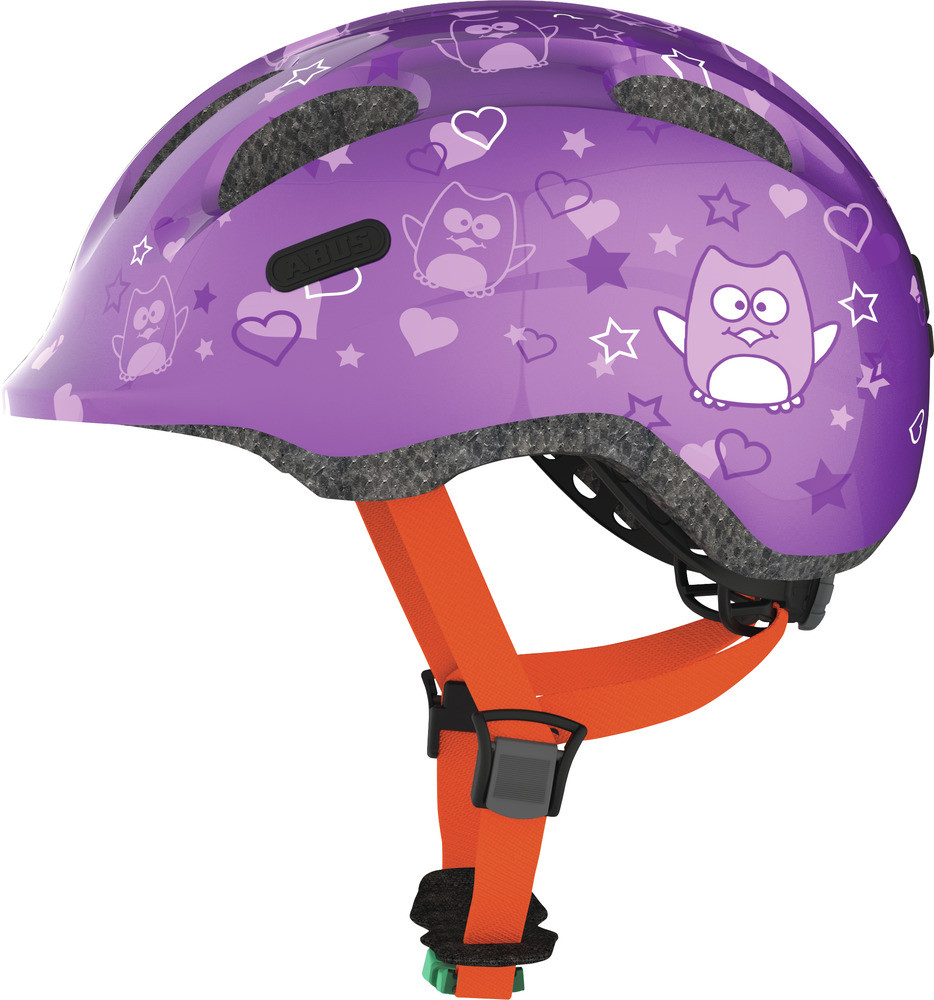Hjälm smiley 2.0 50-55 cm lila med stjärn motiv grönt spänne abus