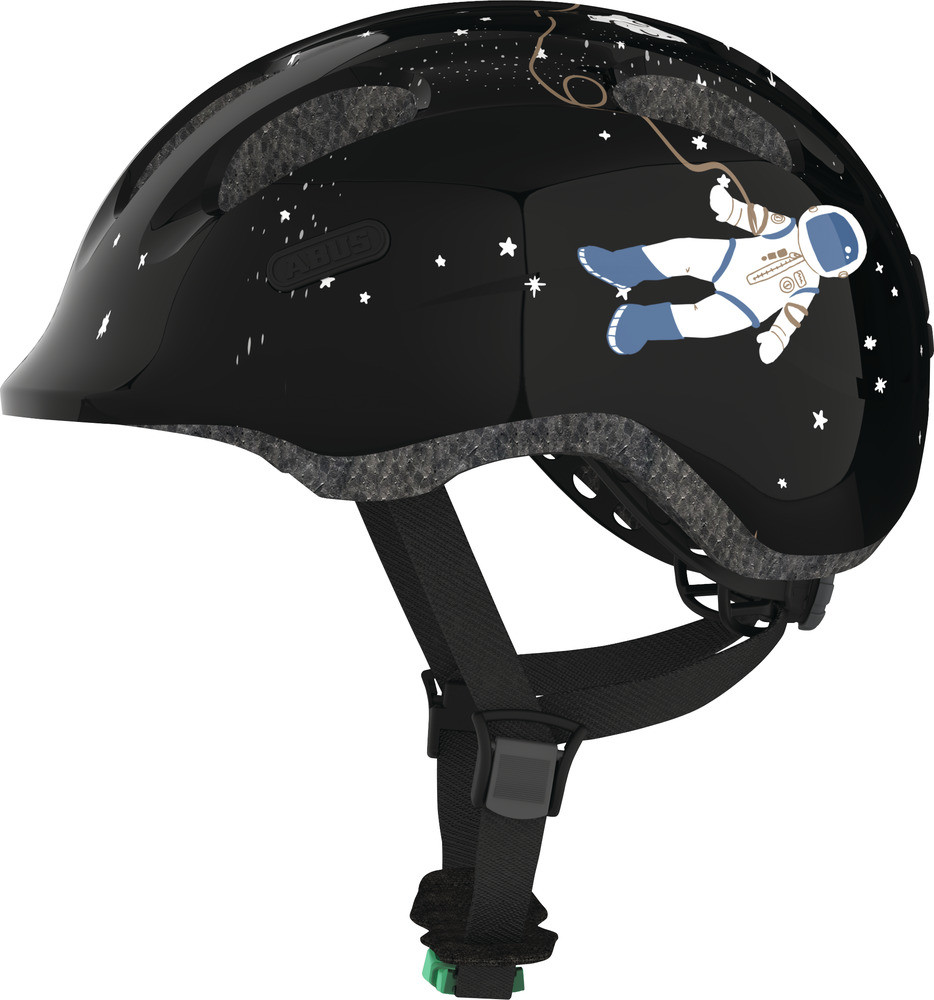 Hjälm smiley 2.0 50-55 cm svart med rymd motiv grönt spänne abus