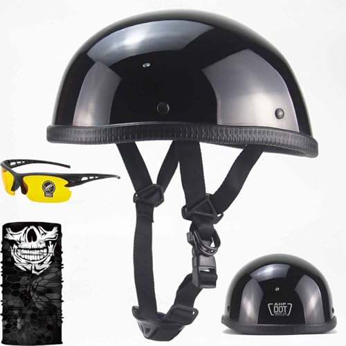 ZLHYQA Motorcykelhjälm, motorcykel halvhjälm mössa kryssande skalle keps små hjälmar tysk stil mössa hjälm set för motorcykel scooter hackare moppade skotrar elektrisk DOT-certifierad