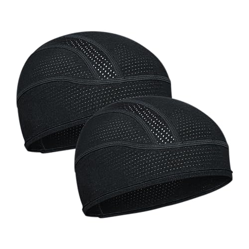 TAGVO 2-pack fukttransporterande dödskallemössa mössa hatt, sommar UV-skydd elastisk löpning hatt hjälmfoder under hjälm hattar huvudbonader, för löpning vandring motorcykel cykling sport hatt skalle
