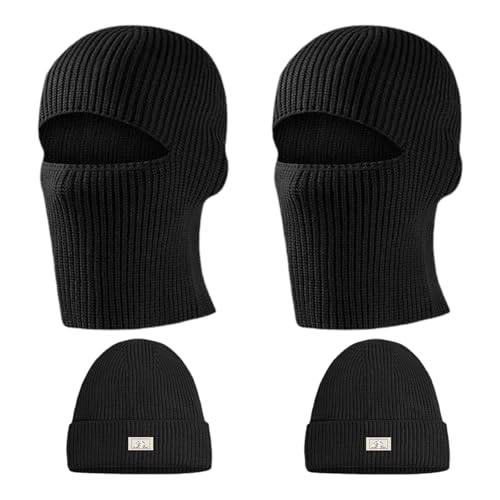 TUONYIS 2 st balaclava skidmask vinter stickad termisk halsdamask en mössa för två ändamål skidmask vindtät cykling halsvärmare för hjälm andas för utomhus., Svart, one size