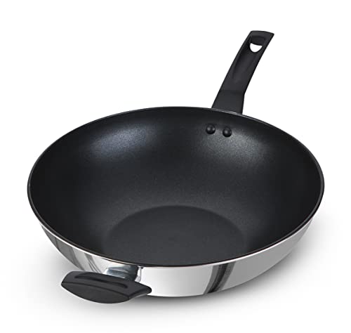 Prestige - 9x Tougher - Wokad stekpanna - Ultra hållbart rostfritt stål - Non-Stick - Induktion Lämplig - Diskmaskin och ugnssäker - 30 cm, med hjälphandtag