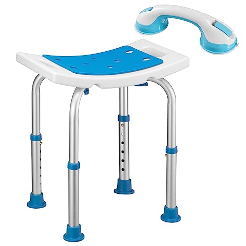 BAKAJI Duschpall i aluminium, badrumssäte, justerbar höjd och halkfria fötter, med hjälphandtag för dusch eller badkar, perfekt för äldre vikt max 150 kg