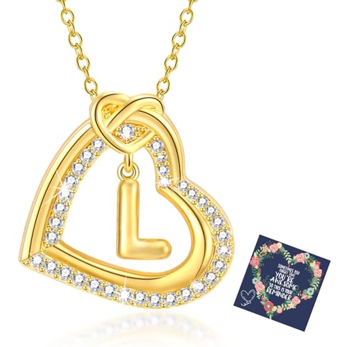 LOLIAS Guld Initial Halsband med Hjärta för Kvinnor - Rostfritt Stål Bokstäver Hänge Smycken, Personliga Flickor Gåvor