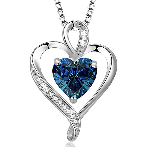 LAVUMO Halsband för Dam Sterling Silver Hjärta Hänge Halsband Rose Guld Cubic Zirconia Smycken Presenter till Flickvän Fru Mamma Hennes Födelsedag Jubileum Jul Mors Dag (Silver-09-september)