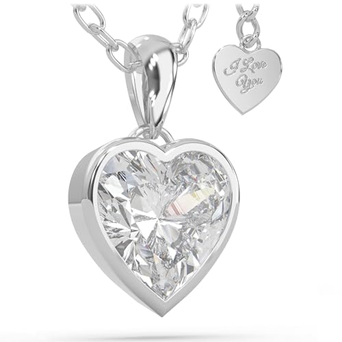 LAVUMO Halsband för Dam Sterling Silver Hjärta Hänge Halsband Rose Guld Cubic Zirconia Smycken Presenter till Flickvän Fru Mamma Hennes Födelsedag Jubileum Jul Mors Dag (Silver-04-april)