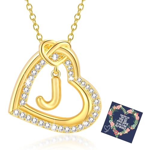 Halsband Kvinnor Silver Necklace Kvinnor Zirkonia Hjärta Hängsmycke Necklace med bokstäver A-Ö Halsband Dam Presenter för Kvinnor Flicka Flickvän 18 + 2 tum (Guld J)