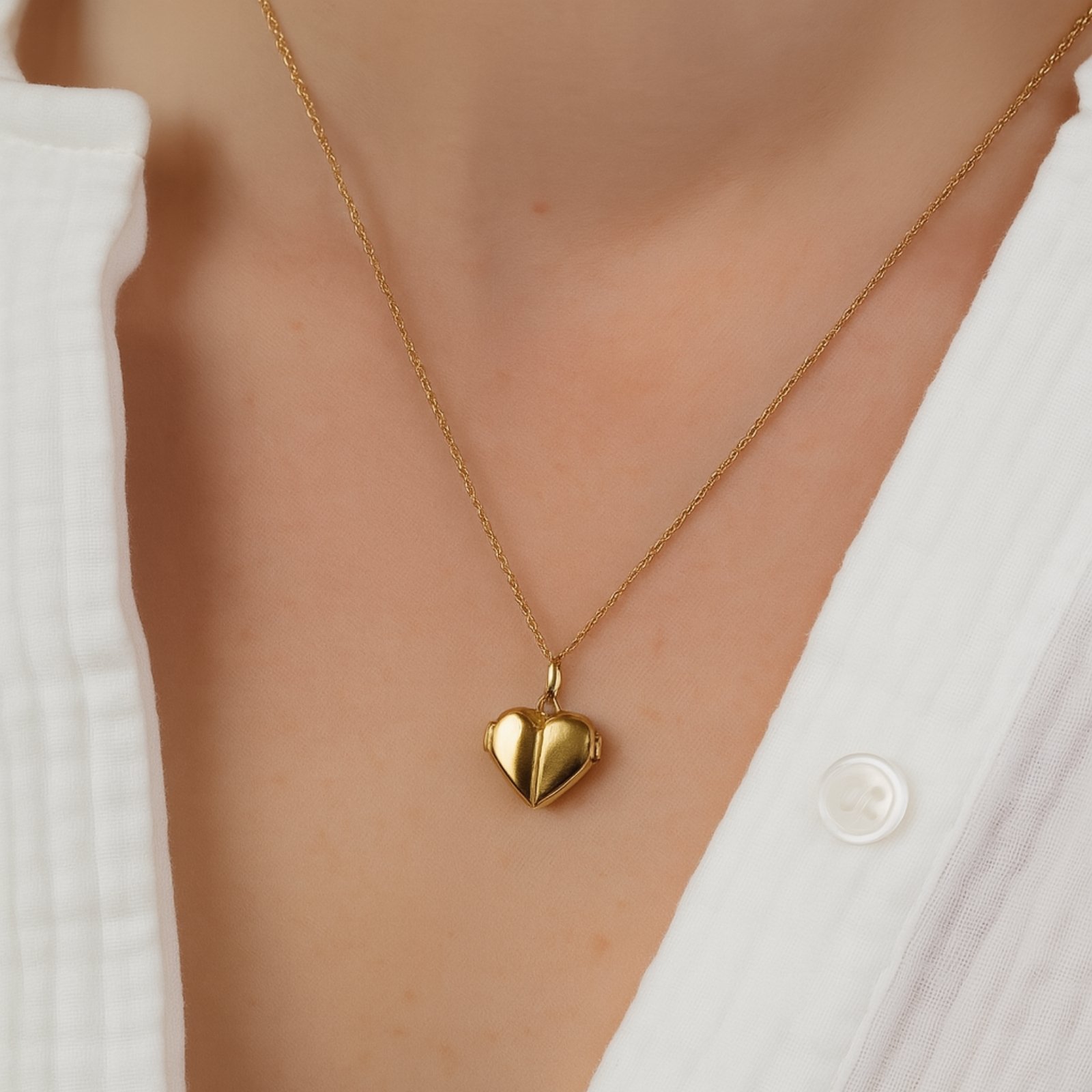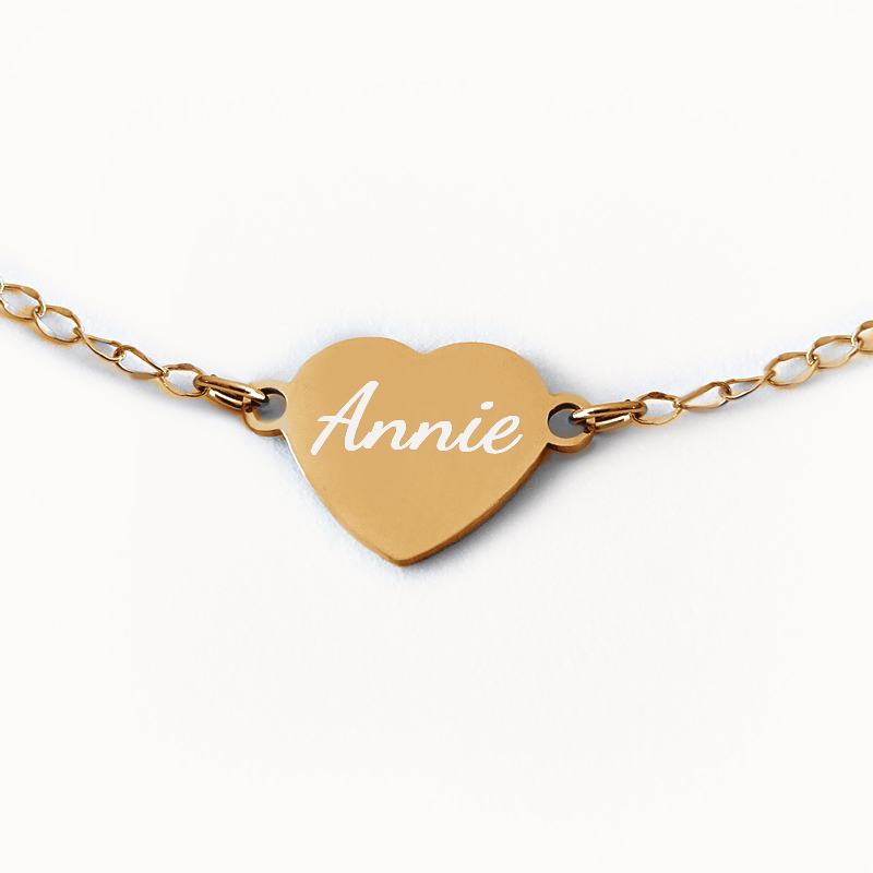 Guld hjärta med berlock, Halsband med gravyr - Rostfritt stål