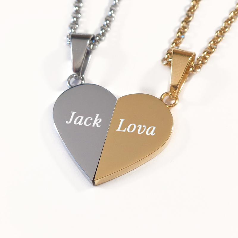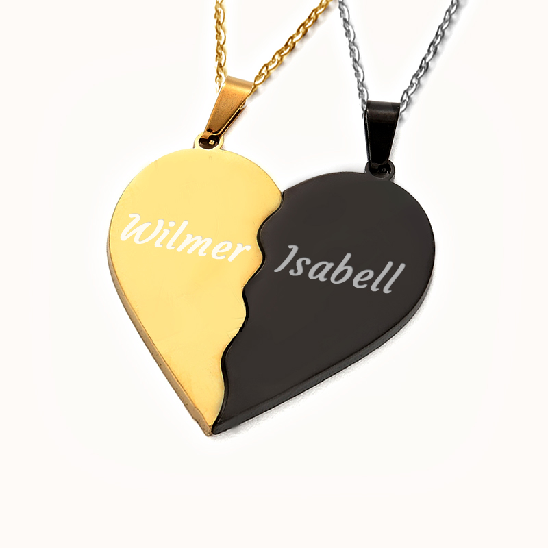 Parsmycke Hjärta, halsband med gravyr - Guld & Rostfritt Stål
