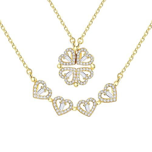 jagosen Kvinnors halsband avtagbart hänge fyrklöver halsband hjärta halsband halsband halsband hals dam bästa gåvor till alla hjärtans dag flickor (guld)